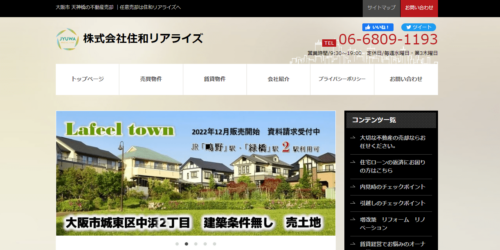 グレース不動産は大阪に特化した不動産会社。物件情報をオープンにして顧客重視の営業を行っています。売却仲介手数料が半額で済む※というのも良心的です。買取保証の付いた売却も行っているため、売却できるかどうか不安という方は利用する価値があるでしょう。住宅ローンが返済できない人のための任意売却相談にも応じています。
