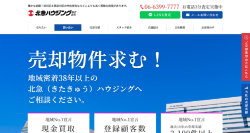 関西不動産買取王という名前で買取を展開するマイダス。査定から最短3日で現金化が可能です。不動産会社が直接買取を行うため、売りだして近所に知られるリスクはありません。なかなか売れないなど、物件に関する様々なお悩みに対応してくれるでしょう。投資用のアパートやビルにも対応しているため、マイホーム以外の相談も可能。相談は年中無休で受け付けています。